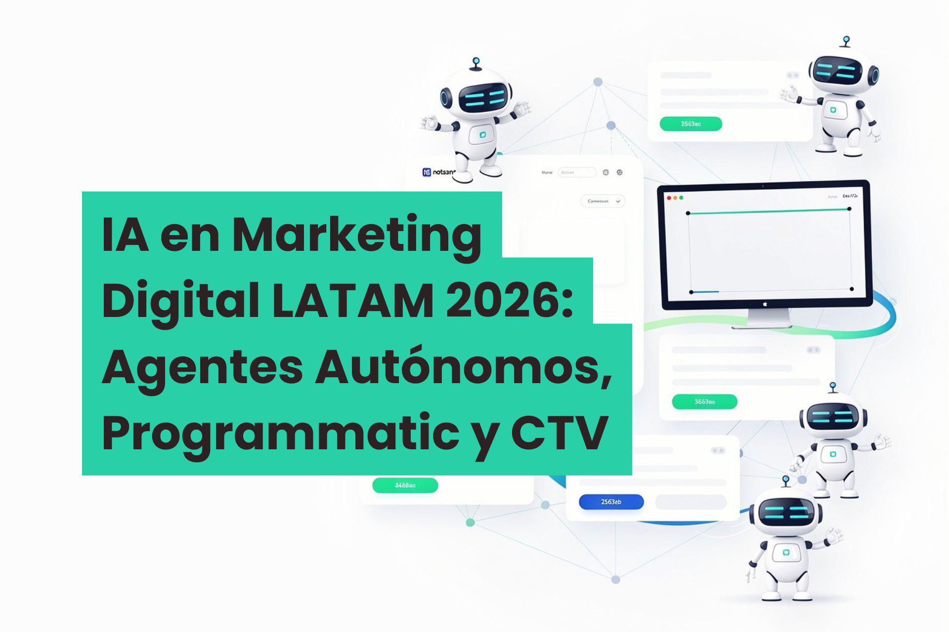En 2026, competir con “más publicaciones” ya no alcanza. En Latinoamérica (México, Brasil, Colombia, Argentina, Perú y Centroamérica), el marketing se volvió más fragmentado: más canales, más datos, más presión por resultados… y consumidores con fatiga digital. La IA no viene a reemplazar tu criterio: viene a ayudarte a decidir y ejecutar mejor. En esta guía vas a ver cómo implementar IA en marketing digital en LATAM (sin humo), con foco en agentes autónomos, publicidad programática y CTV (Connected TV), más un flujo listo para aplicar con tu stack de NotSane.